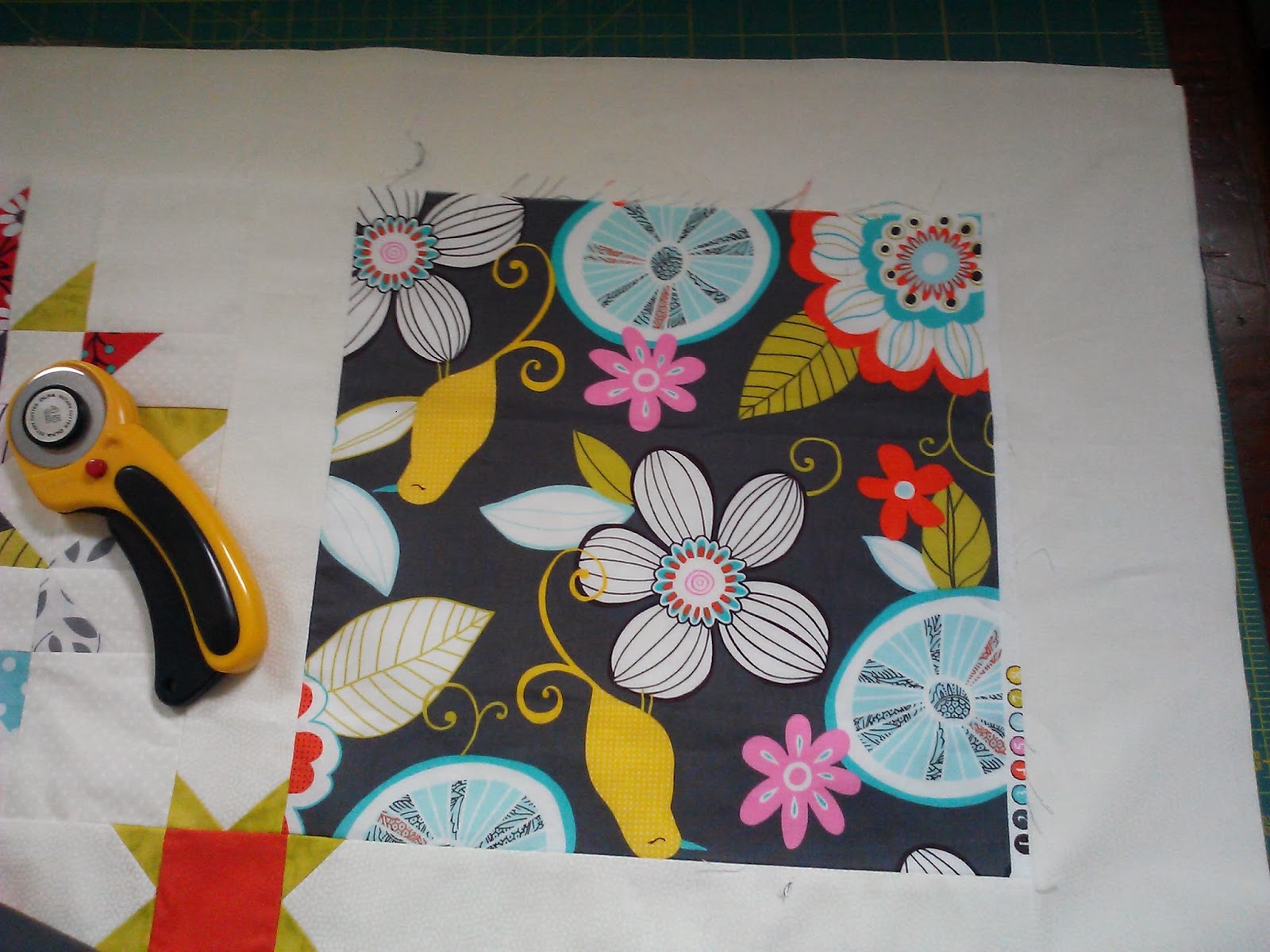 This quilt started with this piece of fabric, sitting on the counter, looking like it needed a home.